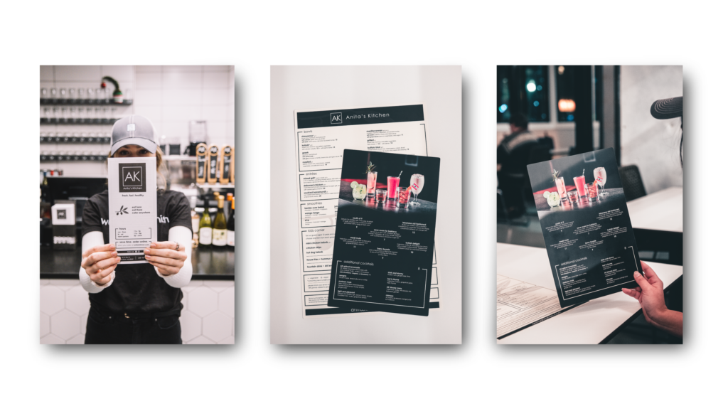 I had posted my graphic design services as a freelancer in various online forums, as well as physical ads on bulletin boards in businesses around metro Detroit, where the owners of Anita’s Kitchen found me and reached out. The process started with a logo, followed by various menu designs, web design, physical banners, posters, merch design, and more.